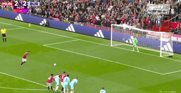 布鲁诺-费尔南德斯最后时刻打入点球,曼联在主场3比2战胜伯恩利,取得本赛季的首场胜利。